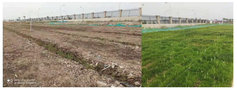 自然资源部天津U钱包APP SERVER与综合利用研究所临港基地。该盐碱地从2020年10月20日开始喷洒微生物菌剂进行修复,11月27日在实验区种植植被。该盐碱地水溶性盐总量的从初始的中度盐渍化(0.2%~0.4%)下降到0.4 g/kg,改良两年来土壤水溶性盐总量维持在较低的浓度,适合玉米、西红柿等农作物的种植。